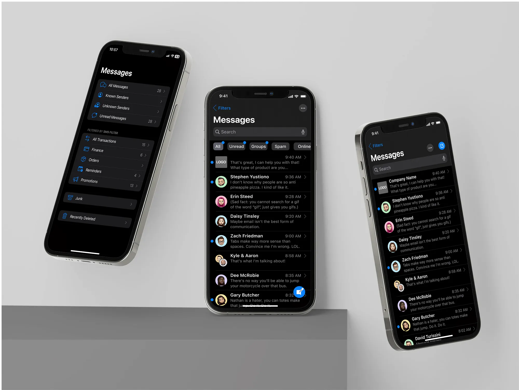 Redesigned the iOS Messages interface to reduce clutter and frustration through smart filtering.